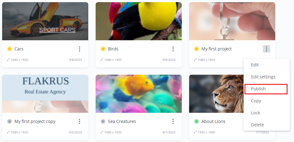 If the item is not already published (marked with a green dot), select Publish from the context menu.