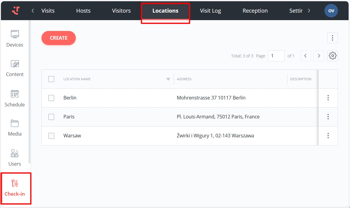 Go to the "Locations" tab in the "Check-in" menu.