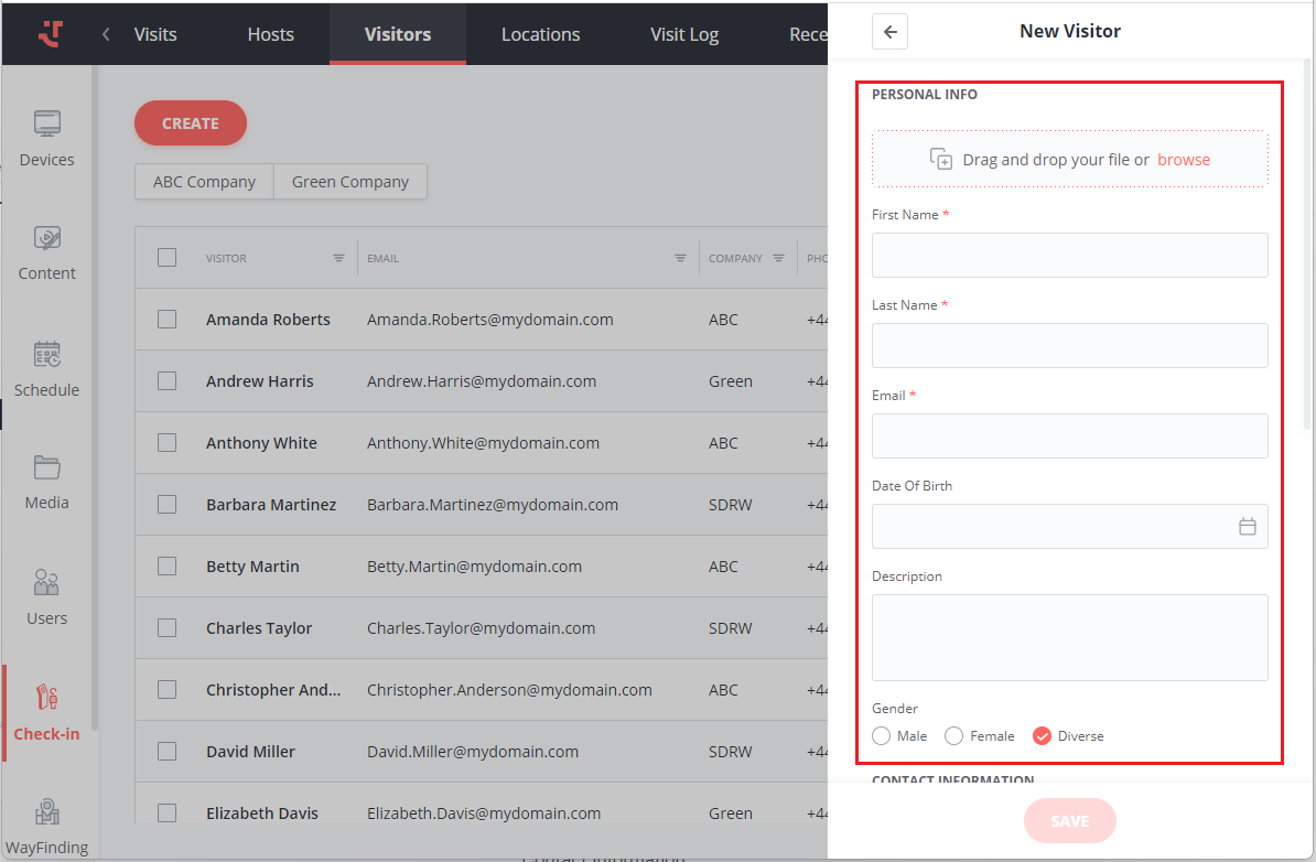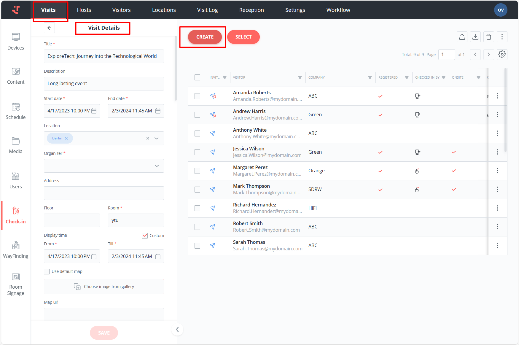 Note that visitors created in visit details will also appear as entries on the 'Visitors' tab.